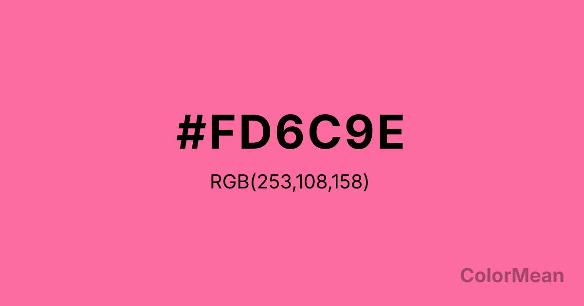 French Pink (#FD6C9E) RGB value is (253, 108, 158). The hex color red value is 253, green is 108, and blue is 158. Its HSL format shows a hue of 339°, saturation of 97 percent, and lightness of 71 percent. The CMYK process values are 0 percent, 57 percent, 38 percent, 1 percent.