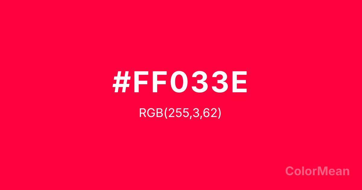 American rose (#FF033E) RGB value is (255, 3, 62). The hex color red value is 255, green is 3, and blue is 62. Its HSL format shows a hue of 346°, saturation of 100 percent, and lightness of 51 percent. The CMYK process values are 0 percent, 99 percent, 76 percent, 0 percent.