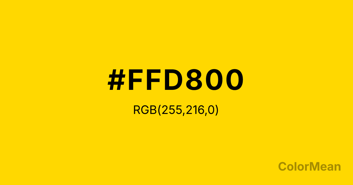 School Bus Yellow (#FFD800) RGB value is (255, 216, 0). The hex color red value is 255, green is 216, and blue is 0. Its HSL format shows a hue of 51°, saturation of 100 percent, and lightness of 50 percent. The CMYK process values are 0 percent, 15 percent, 100 percent, 0 percent.